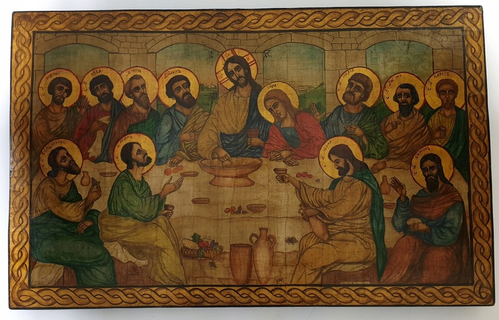 44,8 x 62 x 5, nieznana medium: Ikona ostatnia wieczerza, ręcznie kuta w metalu. Obraz z przeznaczeniem do zawieszenia. Ikona ostatnia wieczerza wymiary 15,5×10 cm cena 12zl Ikona kuta ręcznie w metalu, obsadzona na drewnie. Ikona bizantyjska ostatnia wieczerza posrebrzana. See more ideas about ikon, chrystus, ikona prawosławna. Ikona bizantyjska z przedstawieniem sceny ostatniej wieczerzy.. Ikona bizantyjska ostatnia wieczerza posrebrzana.